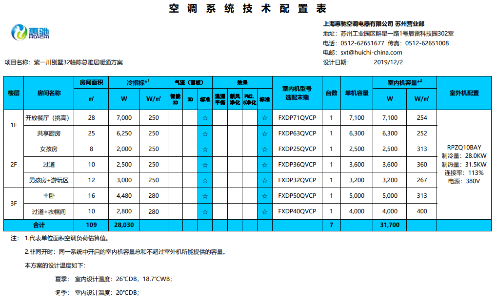威能地暖配置表