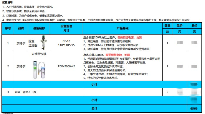 家居集成系統:大金中央空調VRV-P系列、德國威能/嘉科米尼 中央地暖/熱水系統、濱特爾中央水處理
