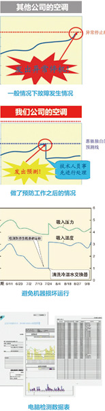 系統點檢就是將外機通過特有接口轉接到電腦上,在機器運行平穩后通過專有軟件得到機器運行的所有參數,將這些參數與正常運行值進行比較,找到其中的異常.